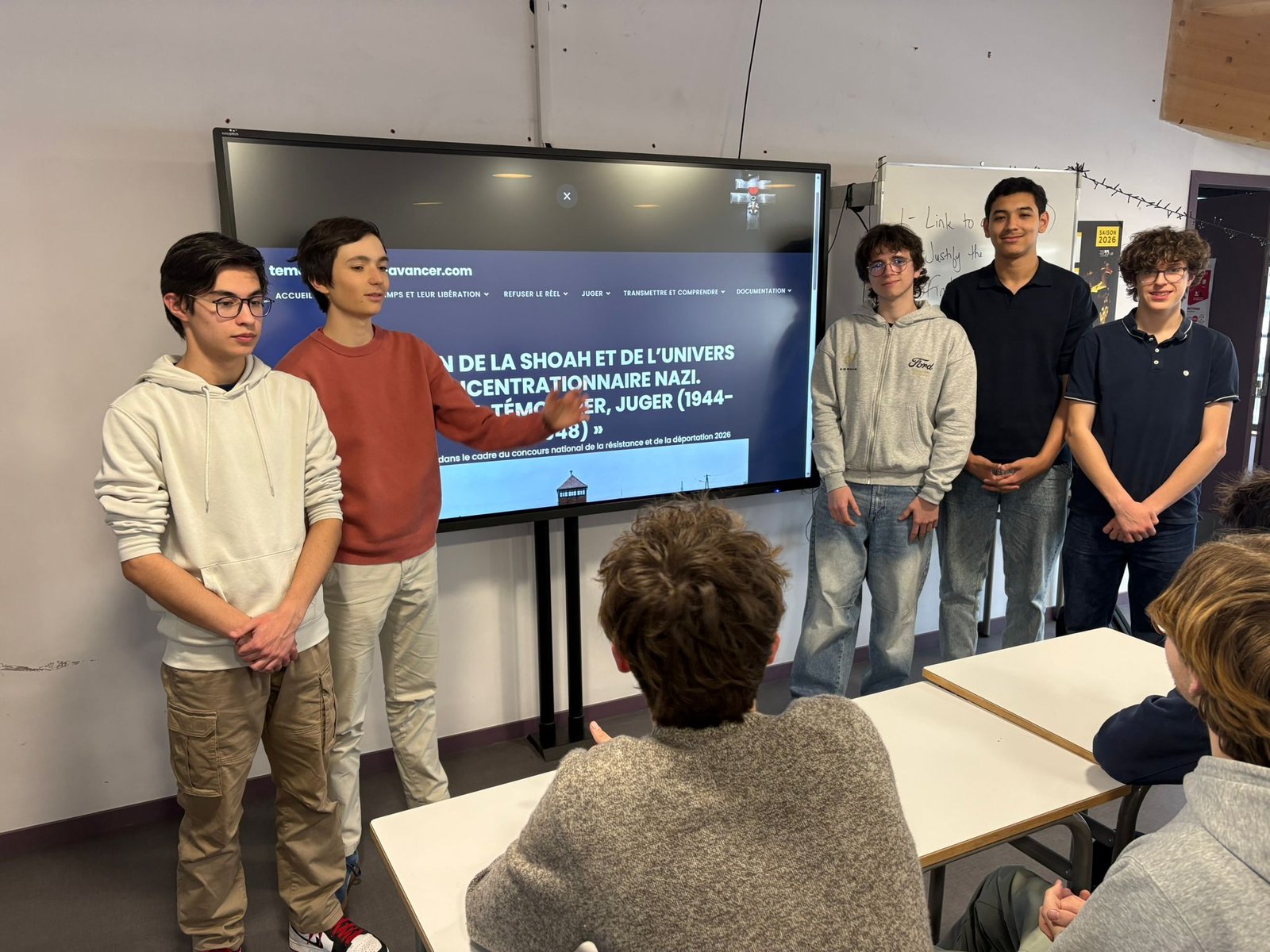Projet réalisé dans le cadre de la participation au CNRD 2026. Photo prise lors d’une présentation de notre projet à notre classe de terminale (T02) au lycée Saint-Michel de Picpus Paris XII