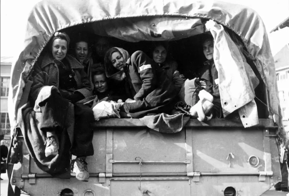 Dès le début du mois d’avril 1945, certaines déportées quittent le camp dans des convois organisés par la Croix-Rouge. D’autres restent encore plusieurs semaines. Le camp n’est totalement libéré que le 30 avril par l’Armée rouge.